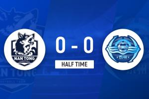 半场战罢,南通队暂0-0泰州队。