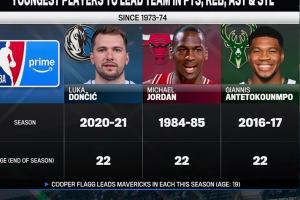 历史上最年轻的得分、篮板、助攻、抢断均领衔全队的球员: