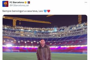 体育资讯11月10日讯 梅西ins晒照重返诺坎普两小时后,巴萨官方发文:欢迎你随时回家,莱奥。