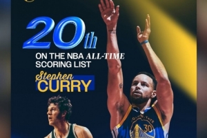 赛前库里距离历史第十九的哈弗里切克还差24分,库里今日轰下26分,总得分来到26397分,得分榜超越第20的哈弗里切克,追上第19的皮尔斯,和皮尔斯并列历史第十九。