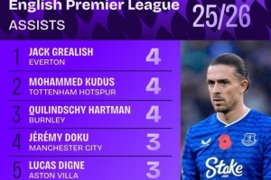 体育资讯11月11日讯 英超联赛已经进行了11轮,squakwa也统计了本赛季英超助攻情况,格拉利什等3人并列居首。