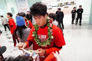 “我可能会想到有很多球迷来机场接我们,但是没想到有那么多,心里特别感动也特别感谢大家。无论是在国外还是国内,大家的热情我们都听得到看得到。确实一开始也并没有想到这届比赛有这样的发挥,我觉得最重要的是要相信自己。