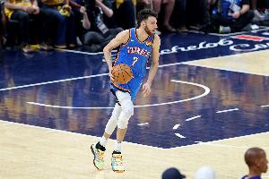 场边库里看高兴了!小佩顿外线连中两记三分球 勇士领先19分打停