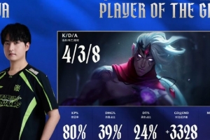 体育资讯1月28日讯 有点东西!HOYA上单维鲁斯全场伤害最高34.5K拿下第一局MVP。