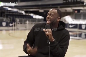 带着镣铐采访!转播方连线库里呢 追梦蹭进镜头里了