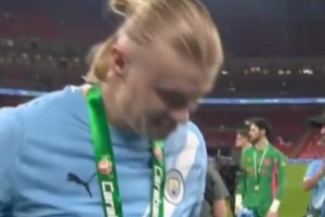 赢得联赛杯,哈兰德以经典助威口号与利兹球迷互动:直到我们死去