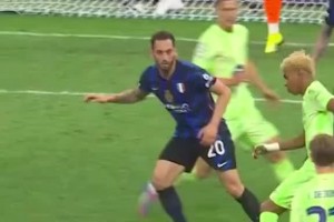 转播方:弗拉泰西用母亲发誓说被斯卡尔维尼踢到,后者却说没踢他